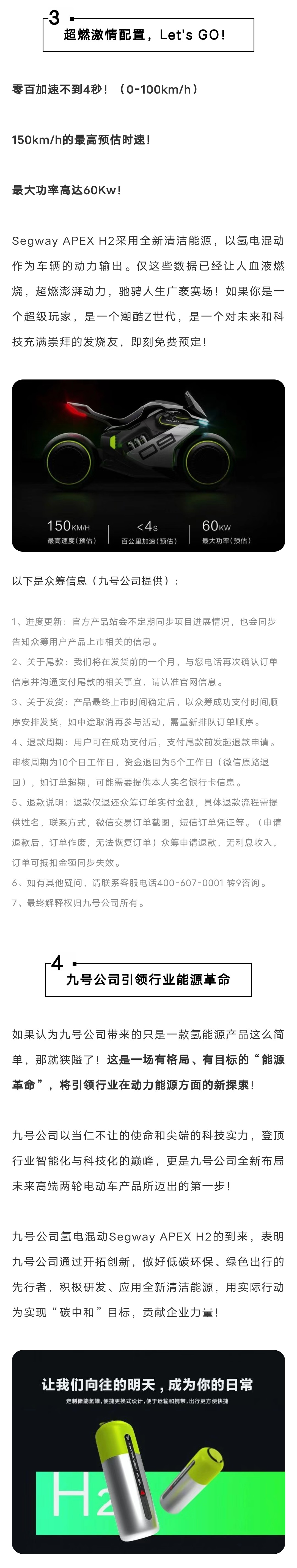 九号公司首款氢电混合动力车Segway APEX H2正是对氢能源的突破尝试,6月30日正式开放量产预约!