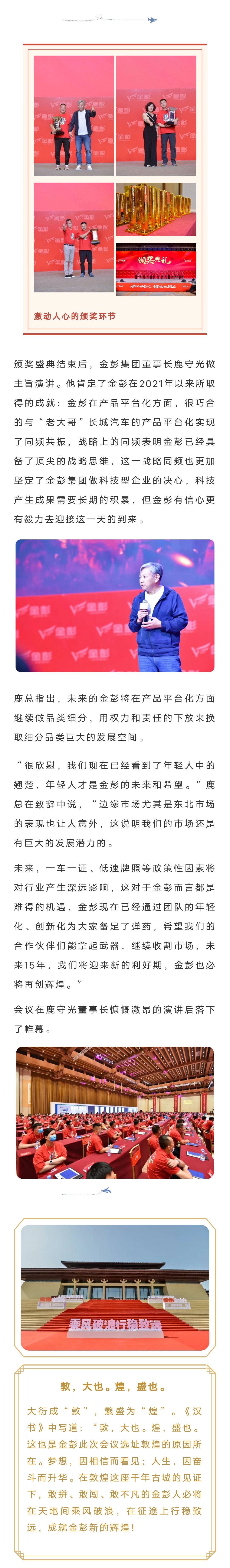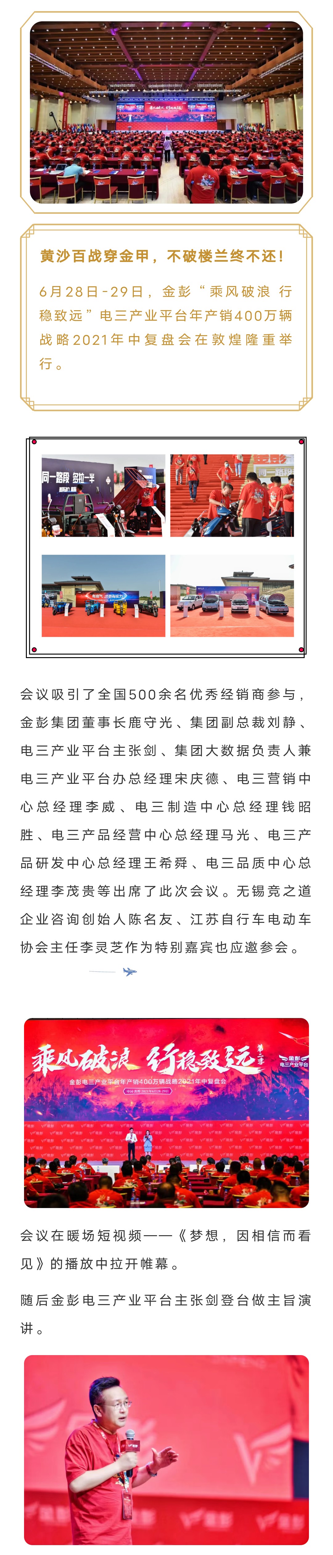 6月28日-29日,金彭“乘风破浪 行稳致远”电三产业平台年产销400万辆战略2021年中复盘会在敦煌隆重举行。...