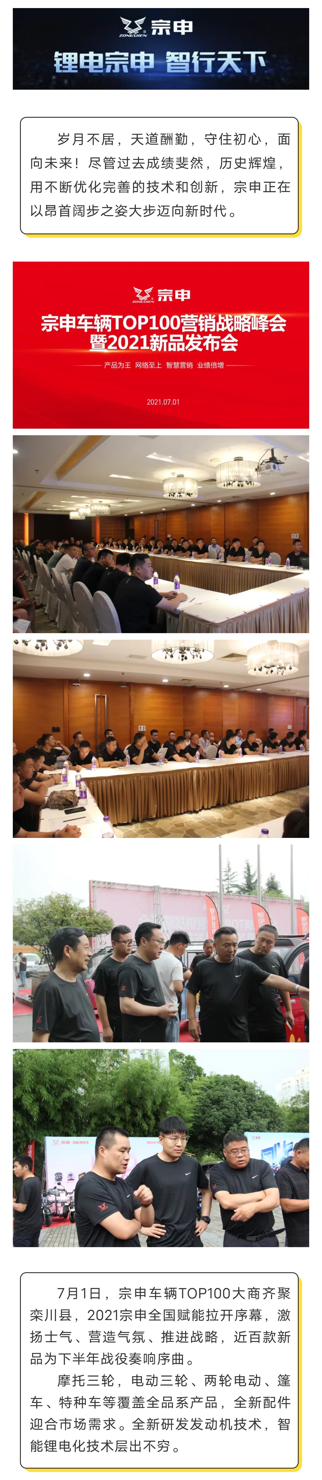 7月1日,宗申车辆TOP100大商齐聚栾川县,2021宗申全国赋能拉开序幕,激扬士气、营造气氛、推进战略,近百款新品为下半年战役奏响序曲。...
