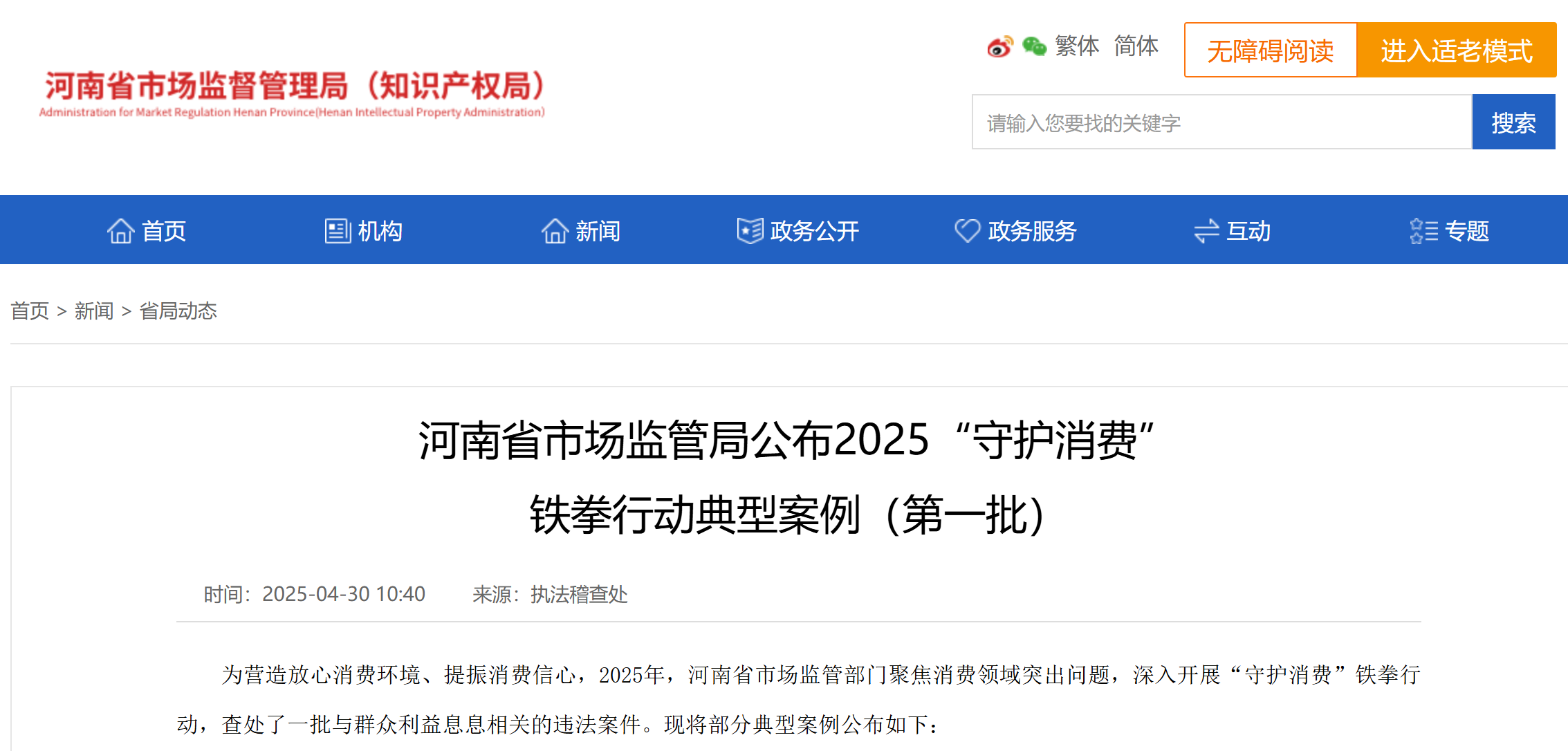 近日,河南省市场监管局公布了2025“守护消费”铁拳行动典型案例(第一批),其中“京球蓝盾”被点名曝光,该经销商被处罚。