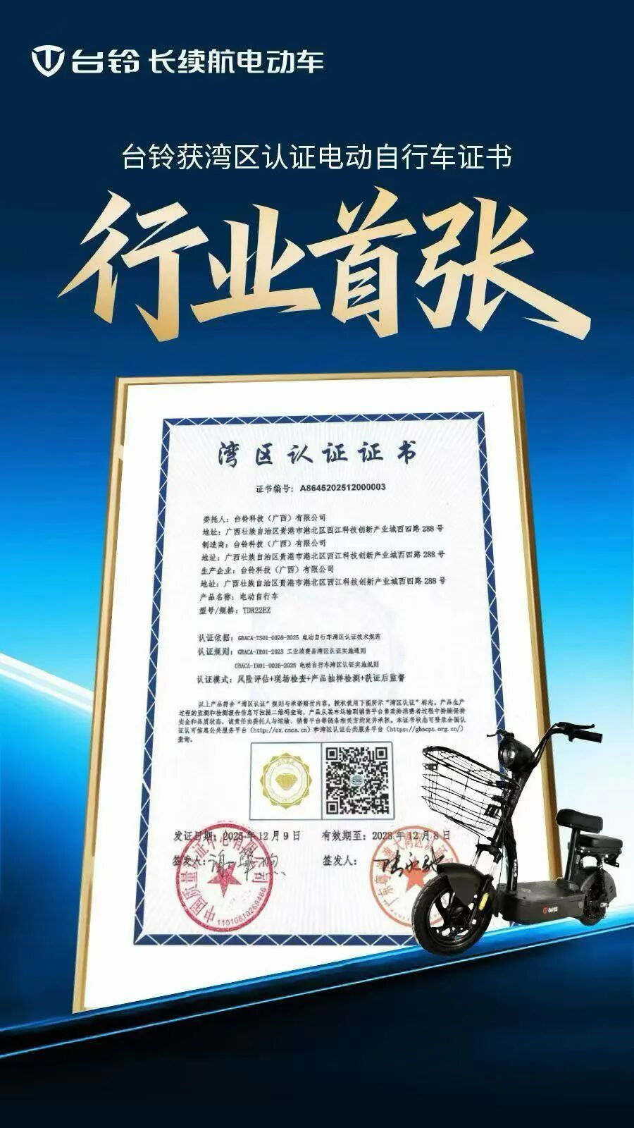 深度观察:台铃斩获行业首张湾区认证,以标准引领者姿态重塑电动出行新高度