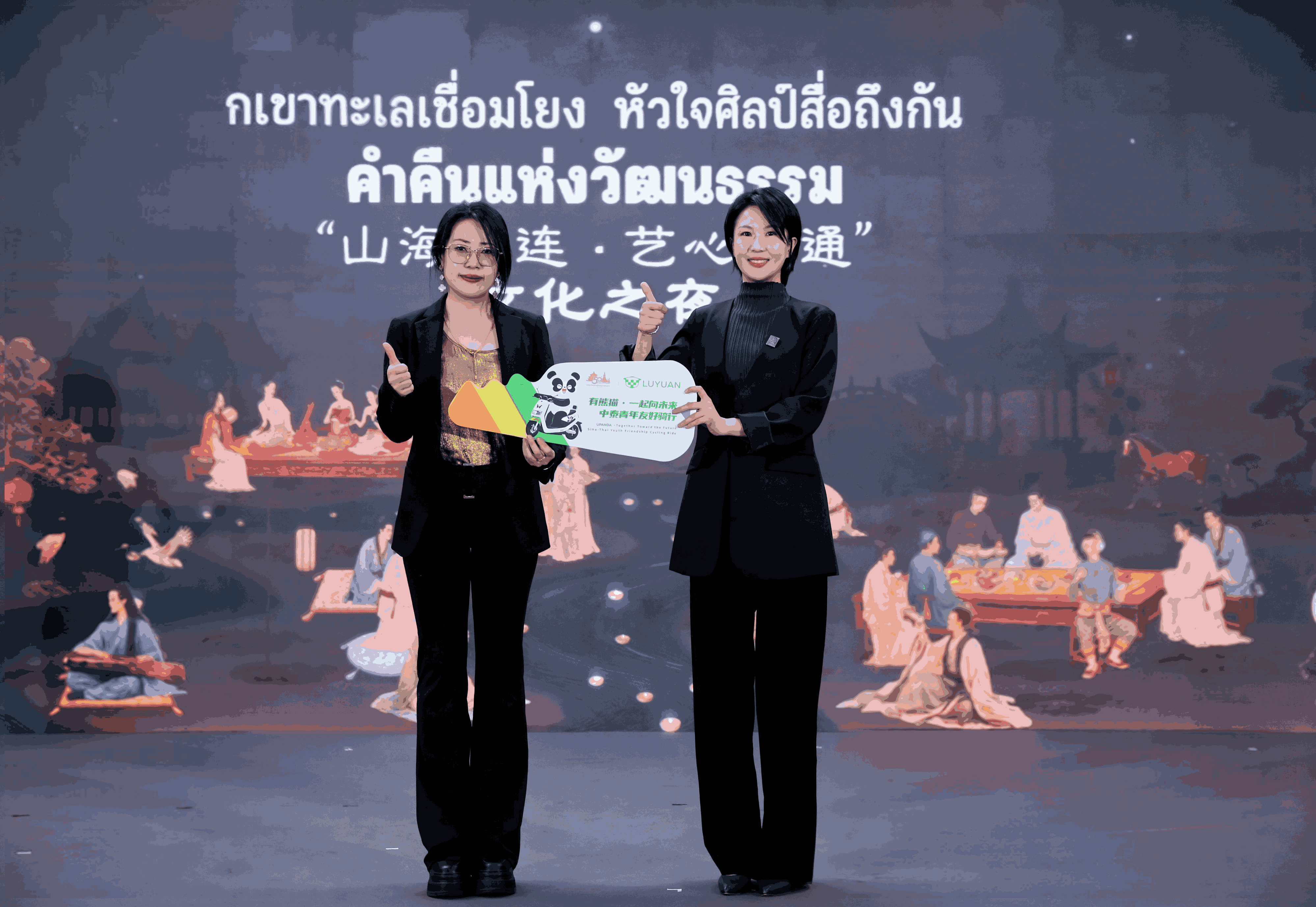 活动举办期间主办方向参与中泰文化交流的青年代表颁发了“2026中泰文化交流新势力青年伙伴”。绿源集团与泰国知名学府博仁大学(Dhurakij Pundit University)合作并赠予一批熊猫主题电动车,希望泰国青年学生代表能够走过更多文化地标、田野乡间,在传递中国文化的同时,走读、记录下泰国的社会发展、风土人情,增进两国青年对彼此文化的了解。