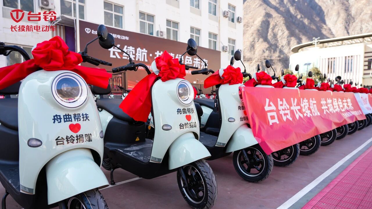 1月23日,台铃在甘肃省舟曲县举办长续航·共筑绿色未来暨电动车捐赠仪式,向当地学校、医院及乡镇单位捐赠电动自行车,支持基层工作者提升服务效率,切实助力当地民生改善和乡村振兴。