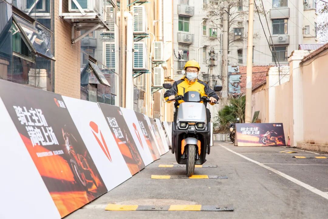 车辆展示试驾区,用户可沉浸式体验雅迪全系高性能车型,感受前沿科技魅力;智能换电快充直击续航痛点,为高频出行的骑手和用户提供高效补能支持;休憩驿站贴心配备免费饮水、充电、Wi-Fi、微波炉、应急药箱等,是骑士忙碌奔波途中的温暖停靠点。