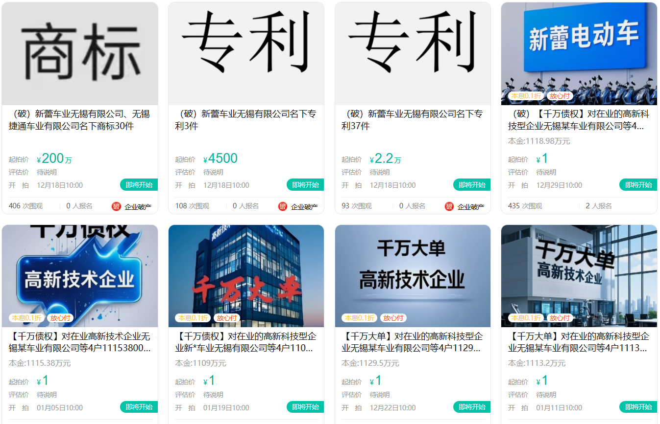 作为电动车行业曾经的知名品牌,新蕾车业无锡有限公司等相关公司正式破产,目前部分房产、设备、商标、专利及车辆已经多次进行公开司法拍卖! 在中国电动车产业发展的30年里,...