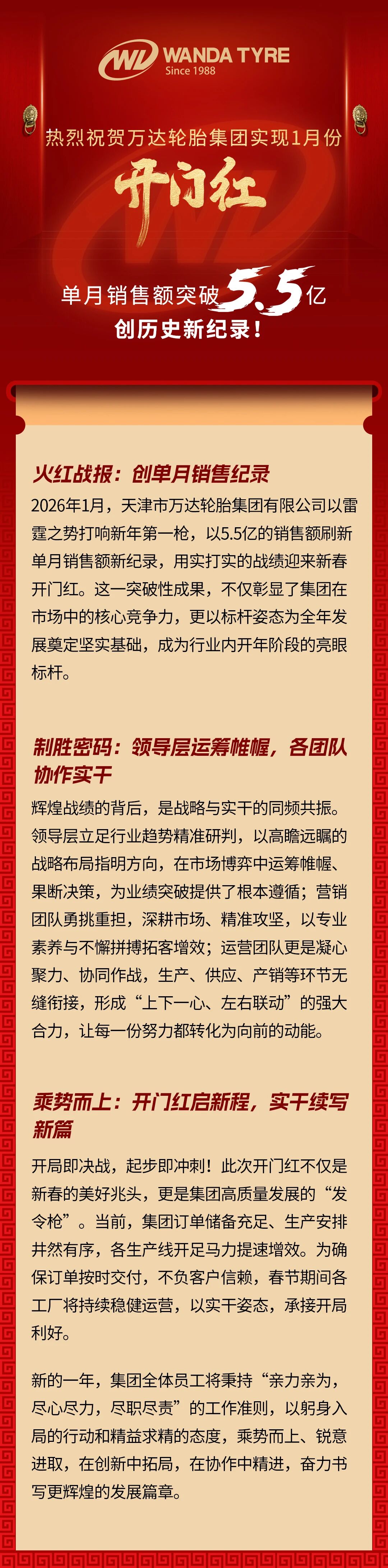 新年开门红!天津市万达轮胎集团26年首月销售创历史新纪录