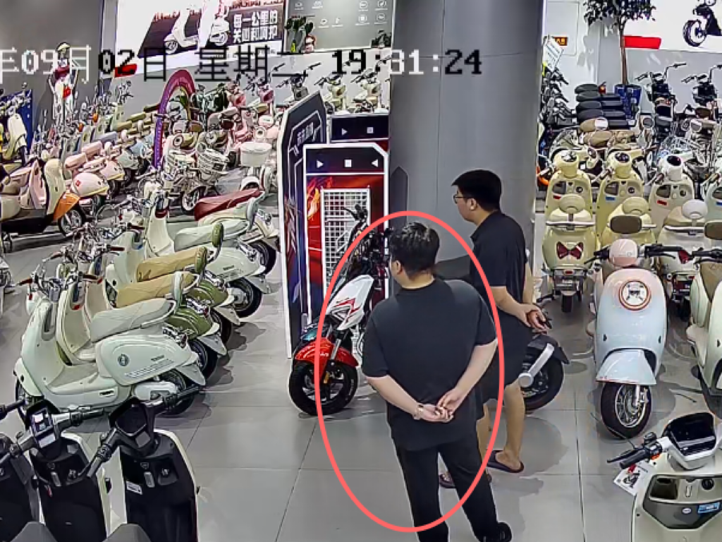 据江苏沭阳某电动车经销商爆料,他们当地出现职业打假人,到门店购买合规车型,然后让店里帮忙改装电池,第二天向市监部门举报要求一赔三。(红圈内为职业打假嫌疑人)
