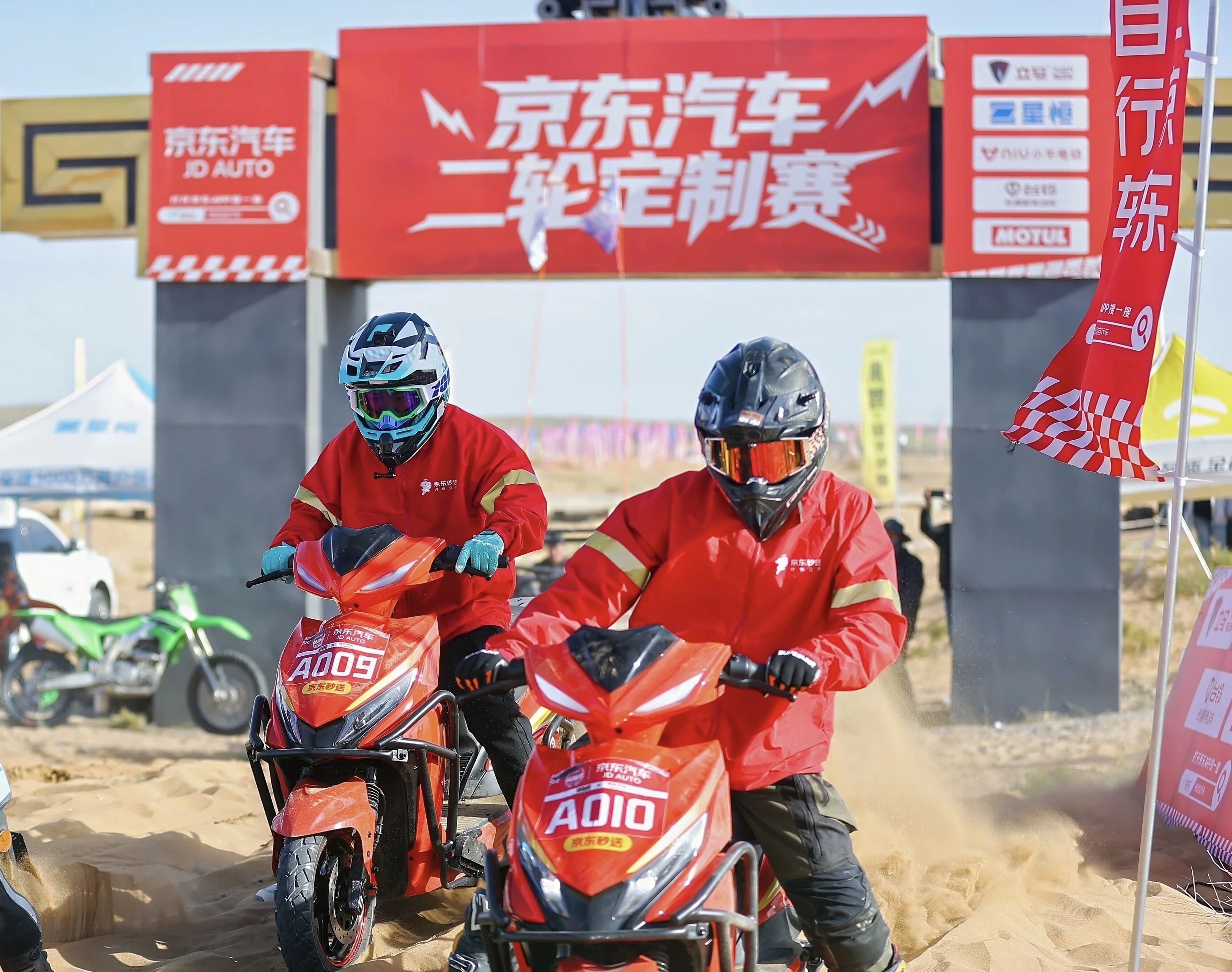 在二轮定制赛中,由立马与京东联合定制的外卖车闪电3.0强势登场。在与诸多车型的同场竞赛中,闪电3.0在沙地赛道中尽显超强性能与骑行稳定性,车辆搭载的大动力电机提速快、输出稳定,让车辆在赛场上一骑绝尘。而TCS防侧滑系统则让车辆在沙尘、起伏路面等现场的极限环境中保持高度稳定。