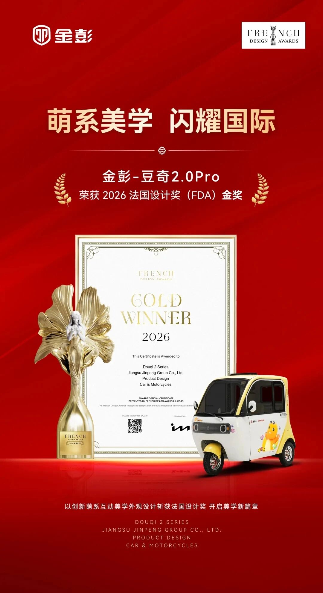 金彭豆奇2Pro奶龙联名款并非简单的跨界产品,而是品牌理念与潮流文化的深度融合。凭借突破性的“萌系互动美学”设计,豆奇2Pro荣膺2026年法国设计奖(FDA)金奖,标志着中国短途出行工具的设计实力获得了国际权威认可。此次联名选择了国民级动漫IP“奶龙”,其温暖、陪伴与成长的核心形象,与金彭“守护家庭出行”的品牌理念高度契合。