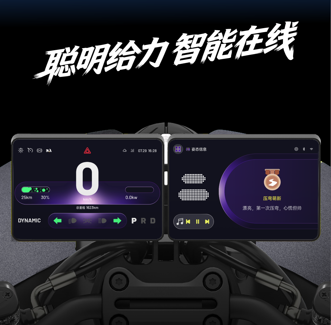 再说“聪明”,这才是重头戏。SC5X闪电版全系标配双屏智能仪表:左边主屏显示车速、电量、里程等基础信息;右边AI副屏才是灵魂所在,基于星云架构和AI大模型推理,让车真正“越骑越懂你”。