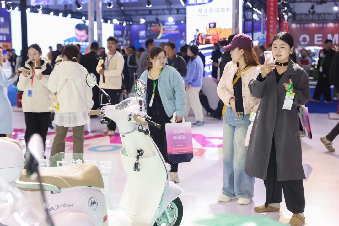 作为“中国电三之都”,丰县产出全国超七成电动三轮车,本届展会10万平米展区覆盖休闲三轮、货运重载、封闭篷车及核心零部件全产业链,成为检验品牌综合实力的“考场”。与中小品牌扎堆低价车型不同,头部品牌爱玛以超大展位、清晰场景化分区、科技化视觉呈现成为全场焦点,洽谈区、产品体验区持续客流爆满,经销商合作意向强烈,直观反映出行业品牌集中度快速提升的趋势。