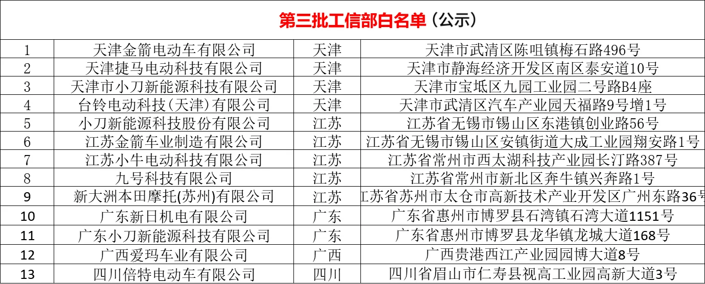2024年开始, 工业和信息化部对电动自行车企业 实施 白名单制度, 从企业布局、工艺装备、产品质量管理、安全生产、消费者权益保障等方面对企业提出要求。如今,已经有两批次公...