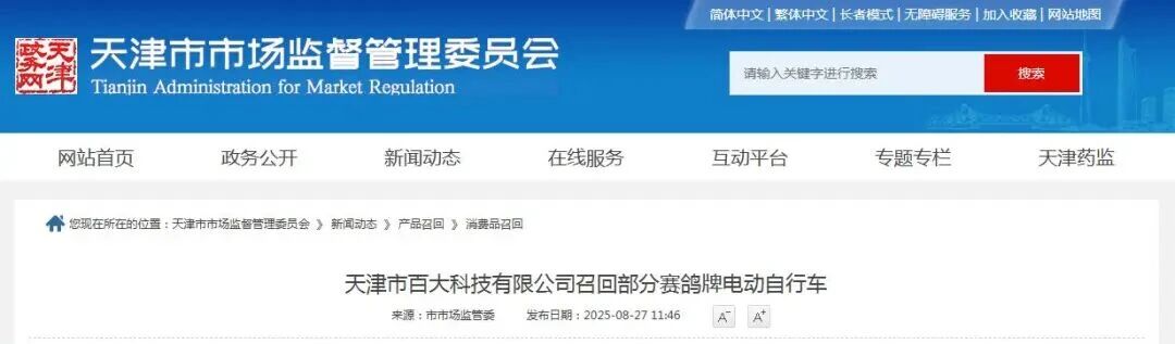 目前,电动车新国标已经实施,企业严禁生产非标电动车。近日,天津市市场监督管理委员会发布多个公告,召回多个品牌电动自行车。主要涉及品牌:赛鸽、大阳、格林豪泰、小飞哥...