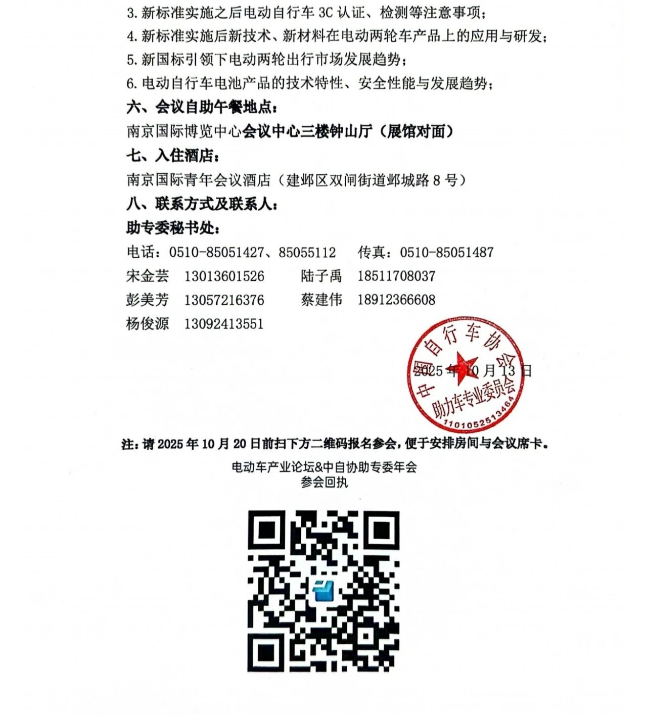 为应对电动两轮车产业从规模扩张向质量突围的关键转型,明晰政策导向与行业未来走向,中国自行车协会助力车专业委员会将在南京展期间,举办领航新国标,智造新未来电动车产业...