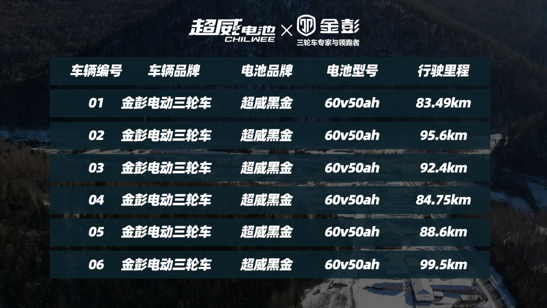 万众瞩目 备受期待的 极限寒战第二季 于1月12日上午10:00 正式开战 本次极寒挑战赛 超威携手金彭、立马 再战零下30℃中国雪乡 赛事信息 0 1 参赛车辆和电池配置 超威电池 :超威黑金...