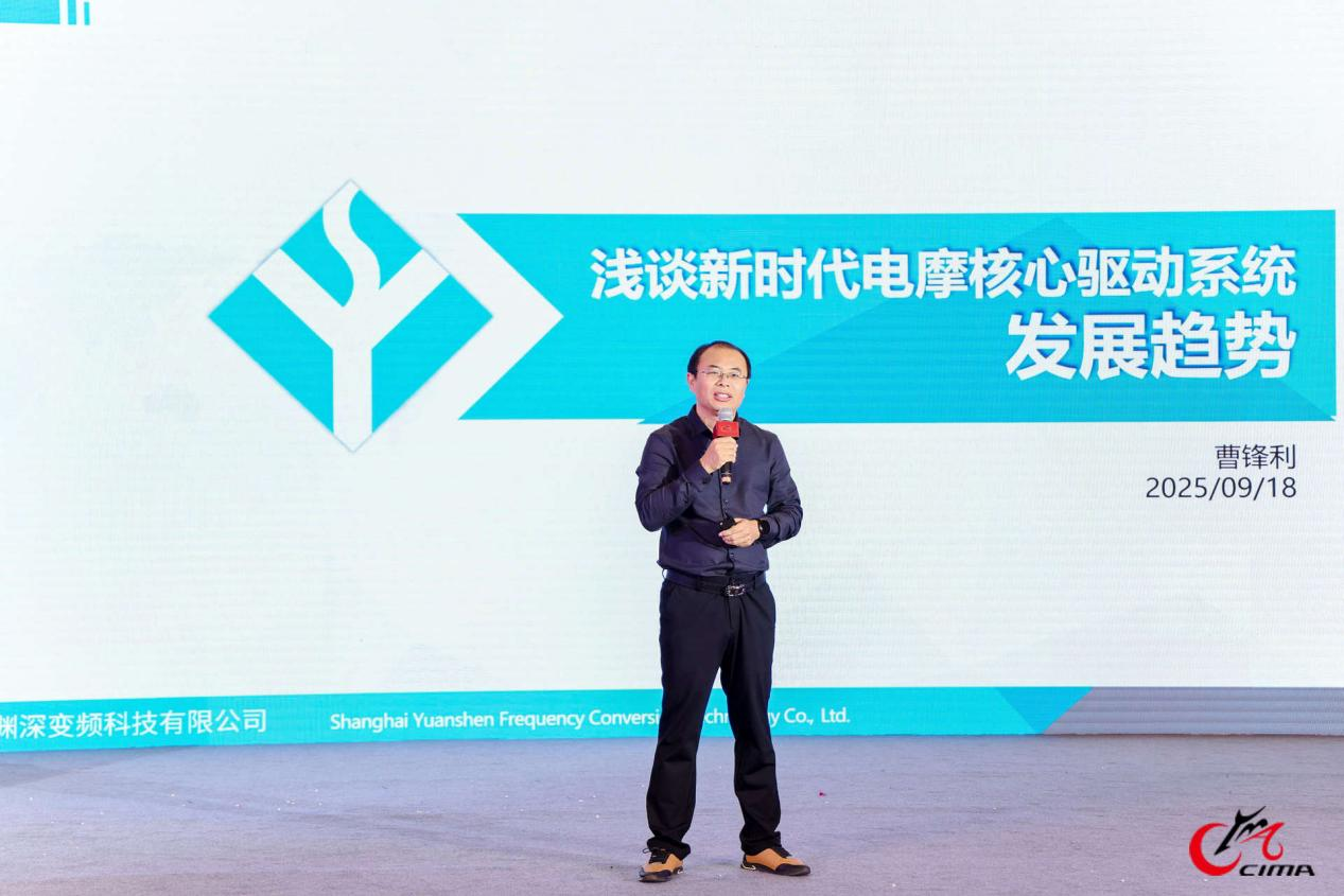 上海渊深变频科技有限公司总经理曹锋利在分享会上浅谈了新时代电摩核心驱动系统。他谈及中国摩托车产业曾因缺乏长期主义在东南亚受挫,而高速电摩是产业发展的绝佳机遇,“三电”(电机、控制器、电池)为其核心。