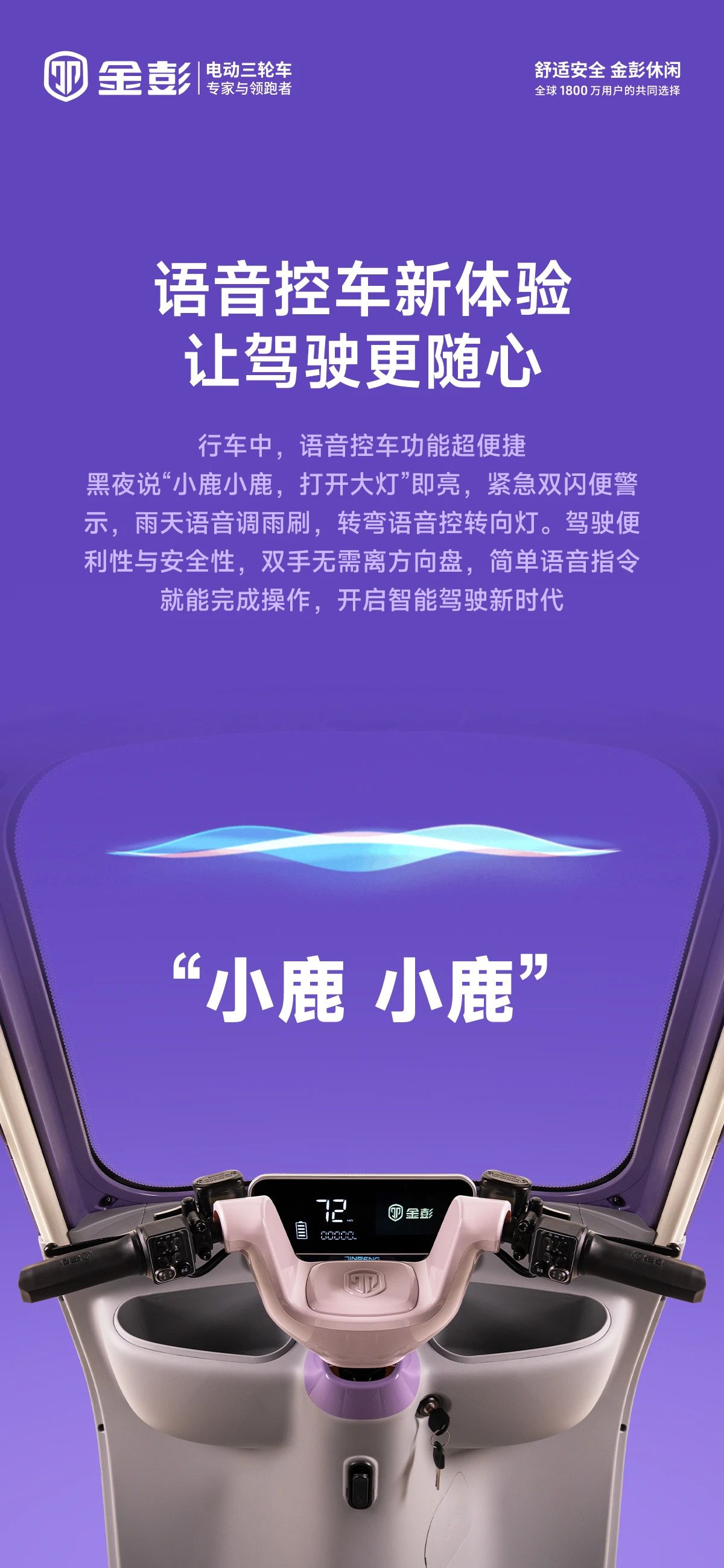 全新的语音智控灯光,让新版的SU7更好玩,更懂事——6000元价位车型也能搭载高端智能配置,金彭的“科技平权”行动,得到了所有消费者的认可,同时也推动了三轮车从“交通工具”向“智能出行伙伴”的转型升级!