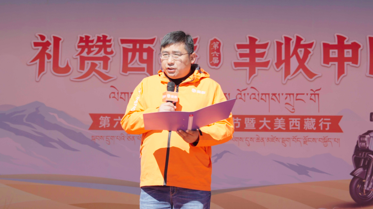 金彭电三产业平台市场部总监李春雨上台致辞,他表示“今年是西藏自治区成立 60 周年,选择在这里举办丰收节,意义非凡。在刚刚过去的7月,难度堪称水电界的“珠穆朗玛峰”的雅江水电站正式开工! 而此次骑行节的举办,更是以实际行动“助农庆丰收”,让金彭成为西藏农牧民奔向美好生活的可靠伙伴。